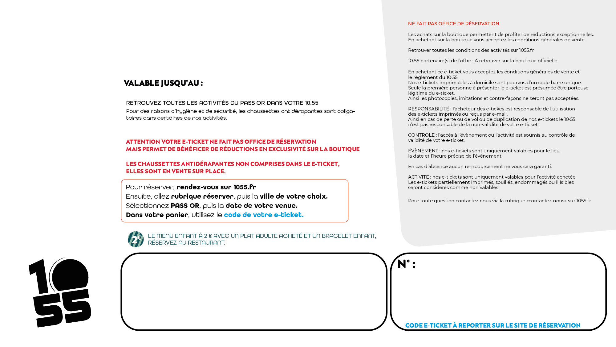 - Validité : Le e-ticket est valable 2 ans à compter de la date d’achat.